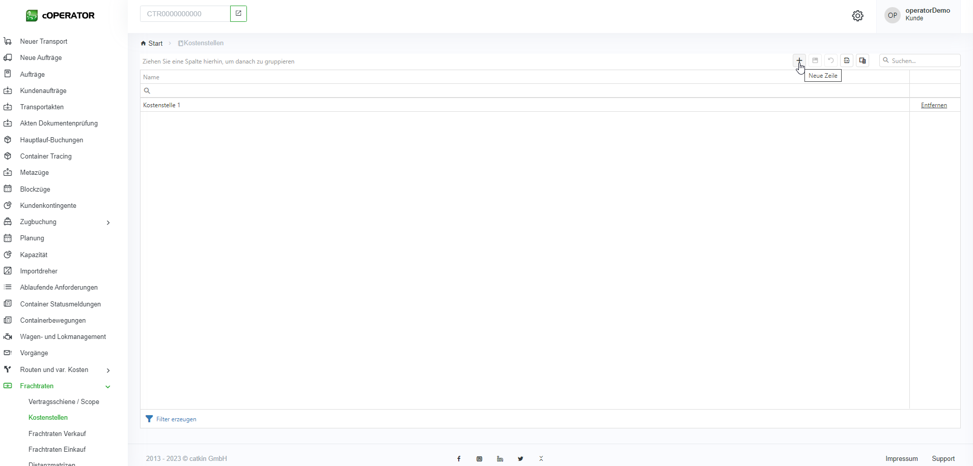 Den Bereich „Kostenstellen“ finden Sie unter „Frachtraten“. Dort können Sie individuelle Kostenstellen hinterlegen. Dies können Sie über das