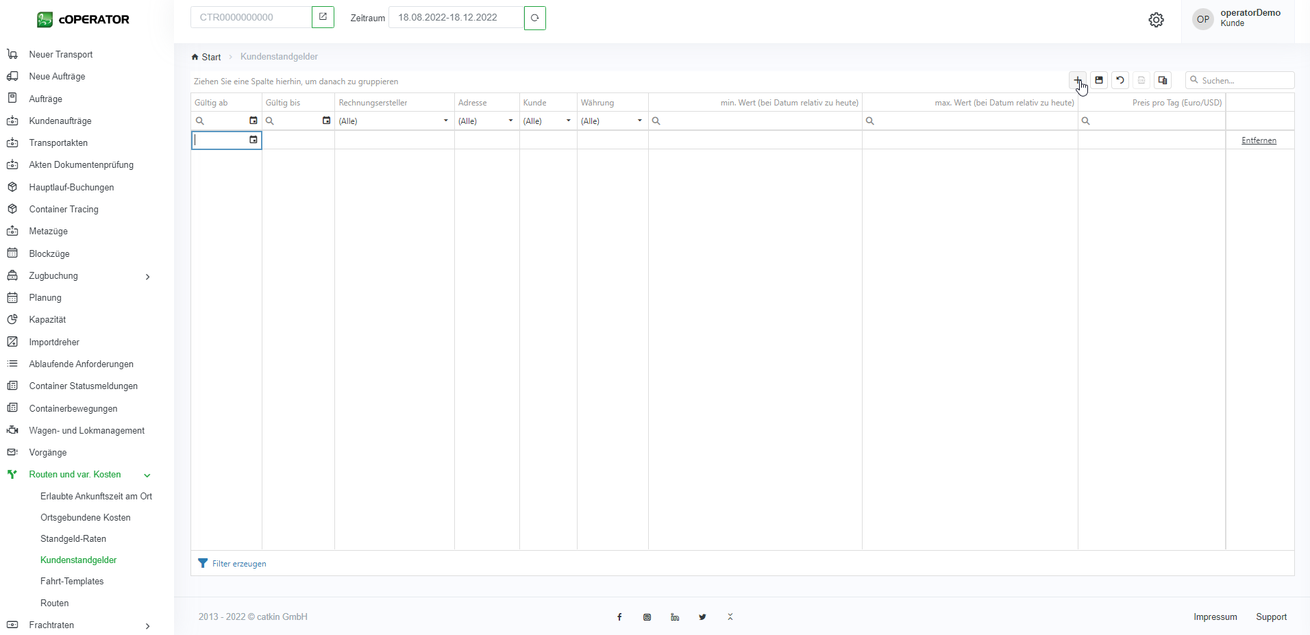 Über das „+“ lassen sich beliebig viele Kundenstandgelder für verschiedene Einrichtungen hinterlegen. Dabei sollten folgende Angaben gemacht werden:
