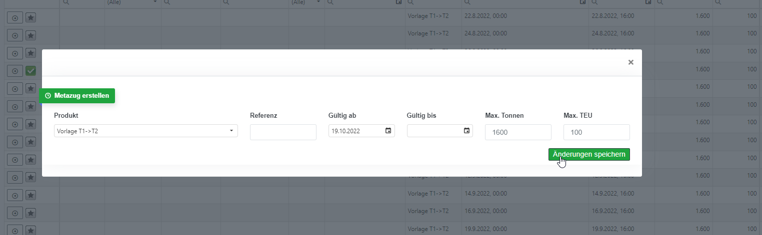 6. Nachdem Sie die „Änderungen speichern“ gelangen Sie zurück zur Übersicht der Metazüge bzw. der Fahrpläne.