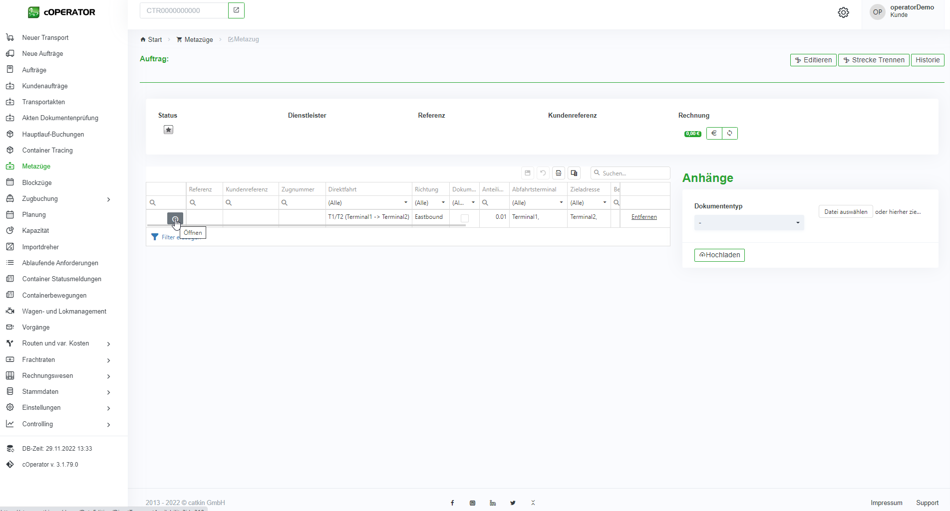 1. Zur weiteren Bearbeitung können Sie einen Metazug öffnen (Abbildung 7‑4). Ein Metazug kann dabei aus mehreren Direktverbindungen (Blockzügen) bestehen (vgl. Metazüge).