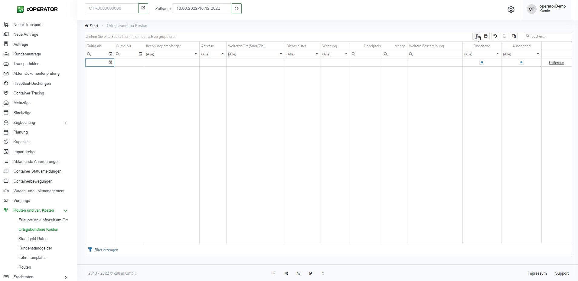 Über das „+“ lassen sich beliebig viele ortsgebundene Kosten für verschiedene Einrichtungen hinterlegen. Dabei sollten folgende Angaben gemacht werden: