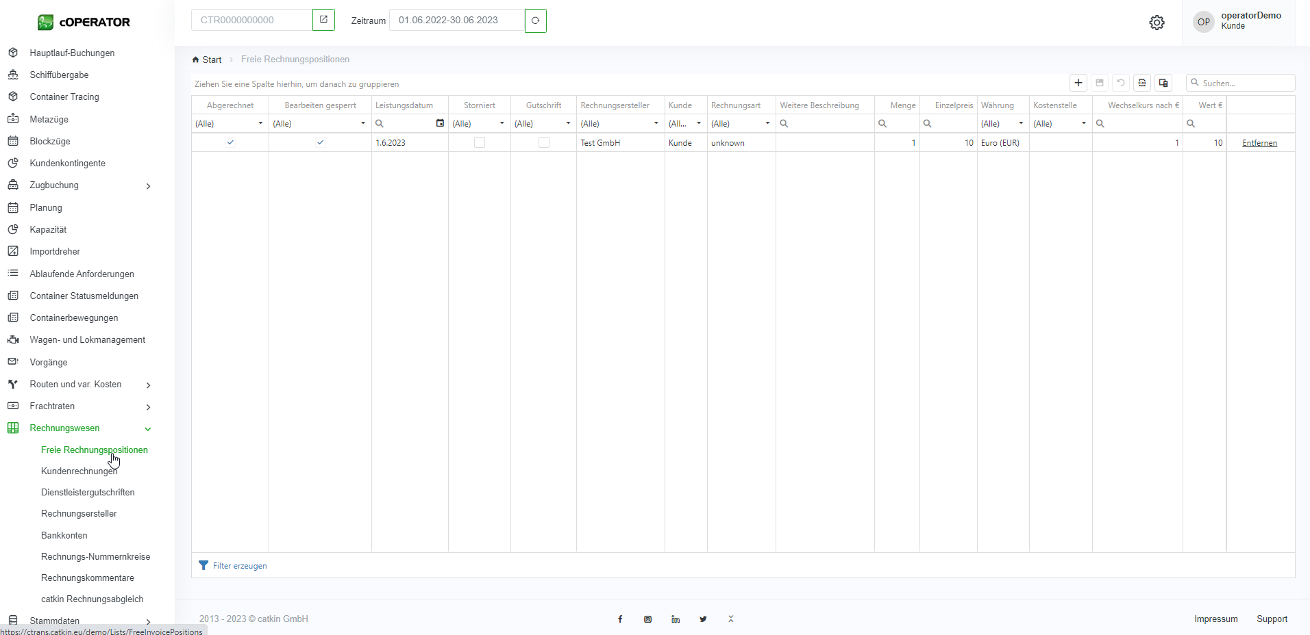 Bei der Anlage einer freien Rechnungsposition, sind die folgenden Angaben Pflichtfelder: