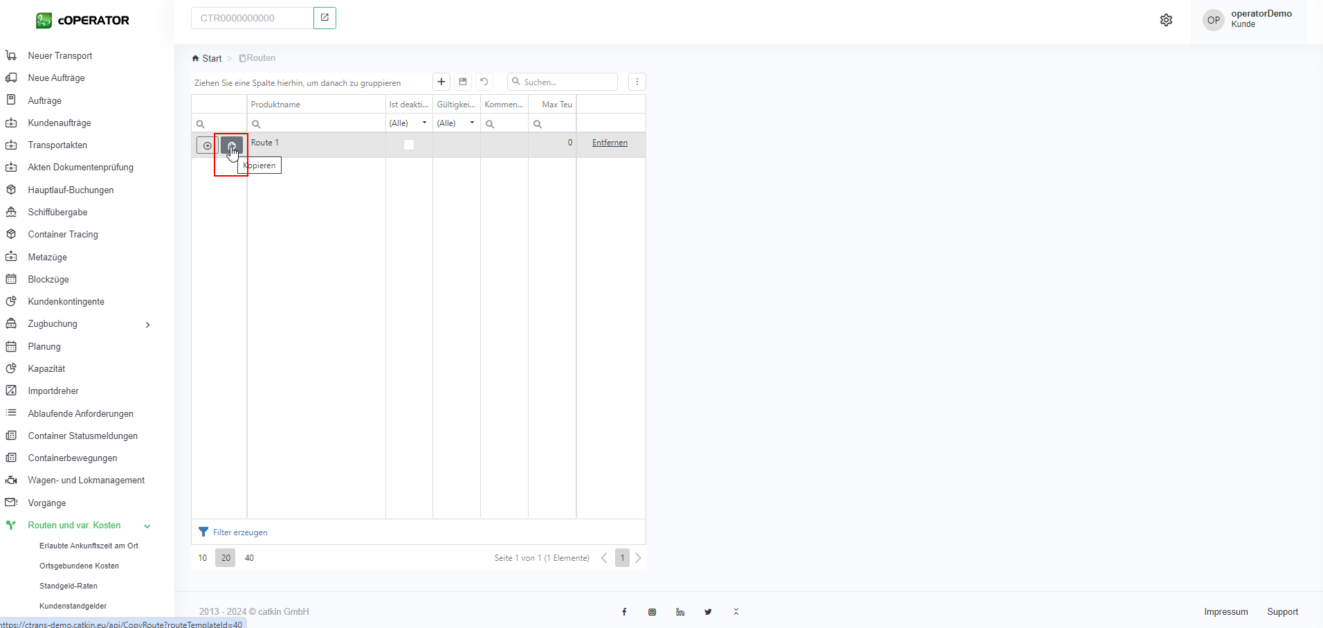 8. Möchten Sie ganze Routen kopieren, können Sie einfach auf den Kopier-Button (