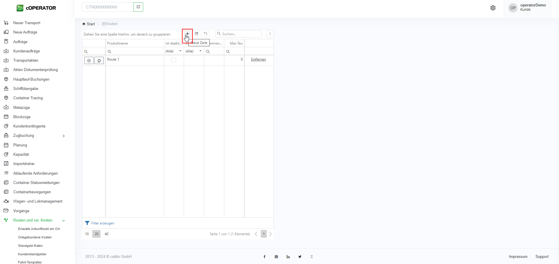 ) am rechten oberen Rand der Tabelle können Sie einfach eine neue Route hinzufügen. Es wird eine neue Zeile erstellt, in der Sie nun die ersten Informationen hinterlegen können.