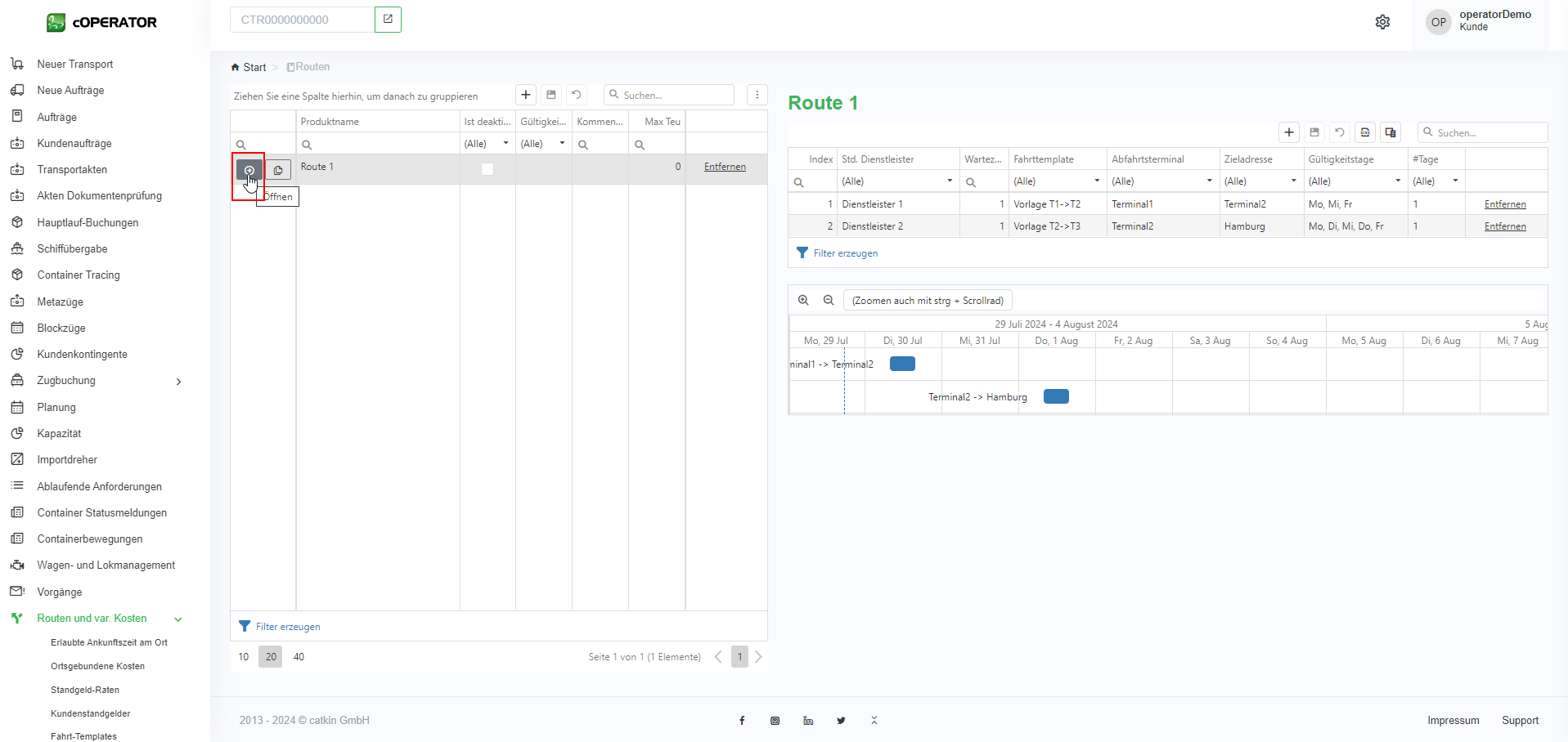 1. Öffnen Sie den Menüpunkt Routen und var. Kosten
